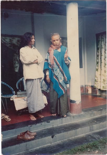 হবিগঞ্জ সফর থেকে ফেরার পথে ব্রাহ্মণবাড়িয়ায় এক দিনের যাত্রাবিরতি, ব্রাত্য রাইসুর সঙ্গে আহমদ ছফা। ছবি. ইকবাল খান চৌধুরী ১৯৯৫।